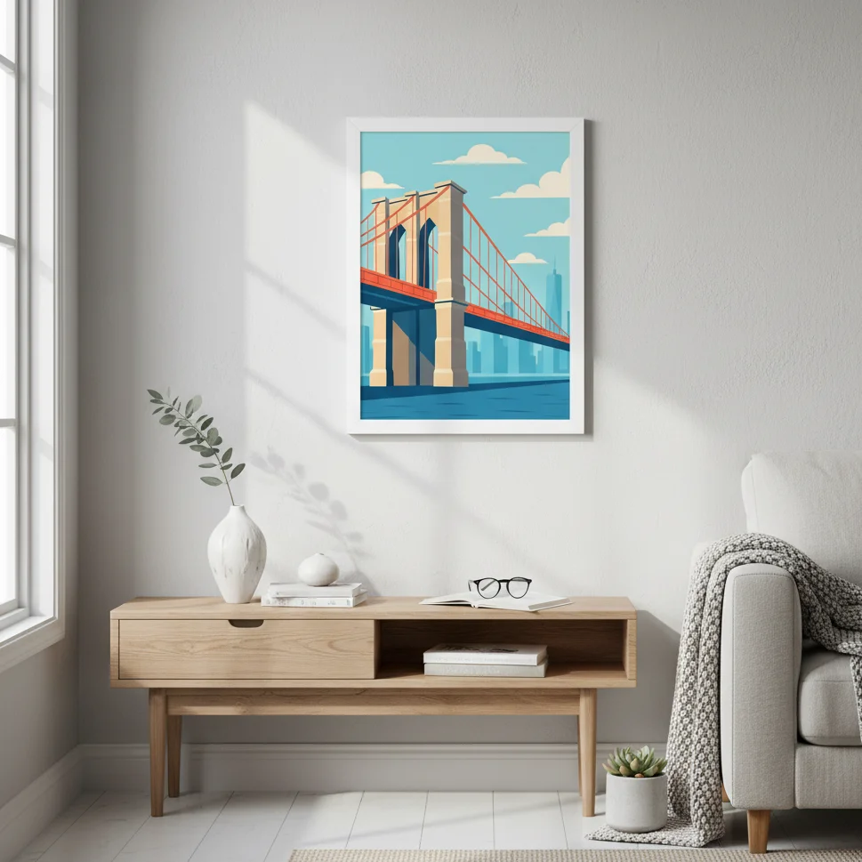 Bring a piece of New York’s timeless charm into your space with this stunning Brooklyn Bridge artwork. Expertly painted in a captivating style, it captures the elegance and architectural beauty of one of the world’s most iconic landmarks.