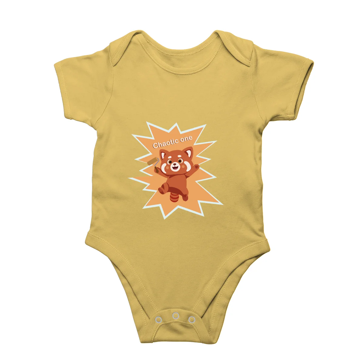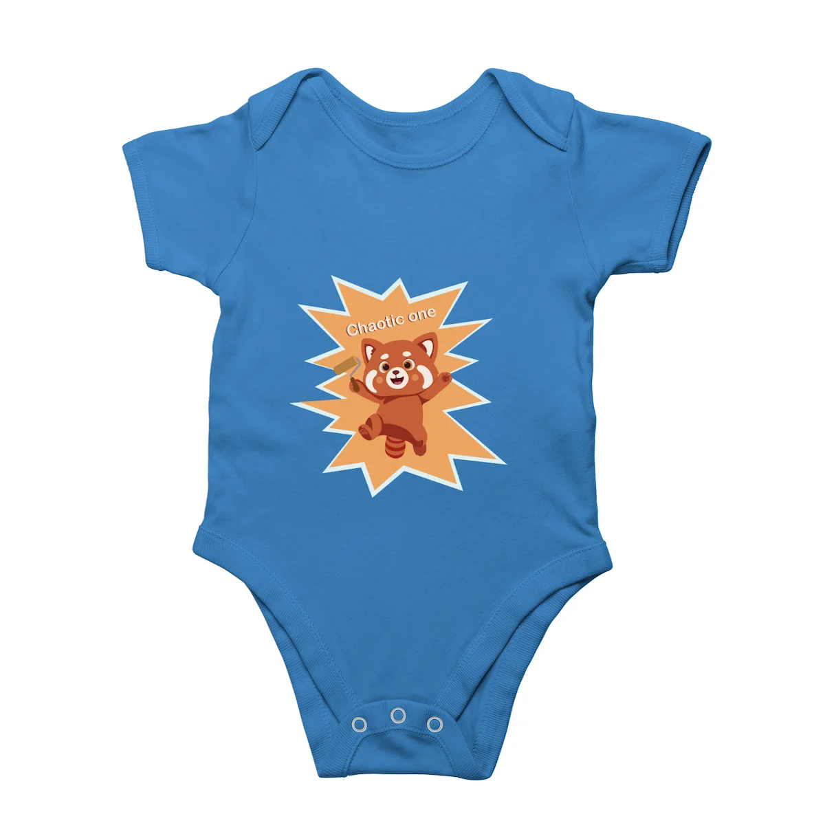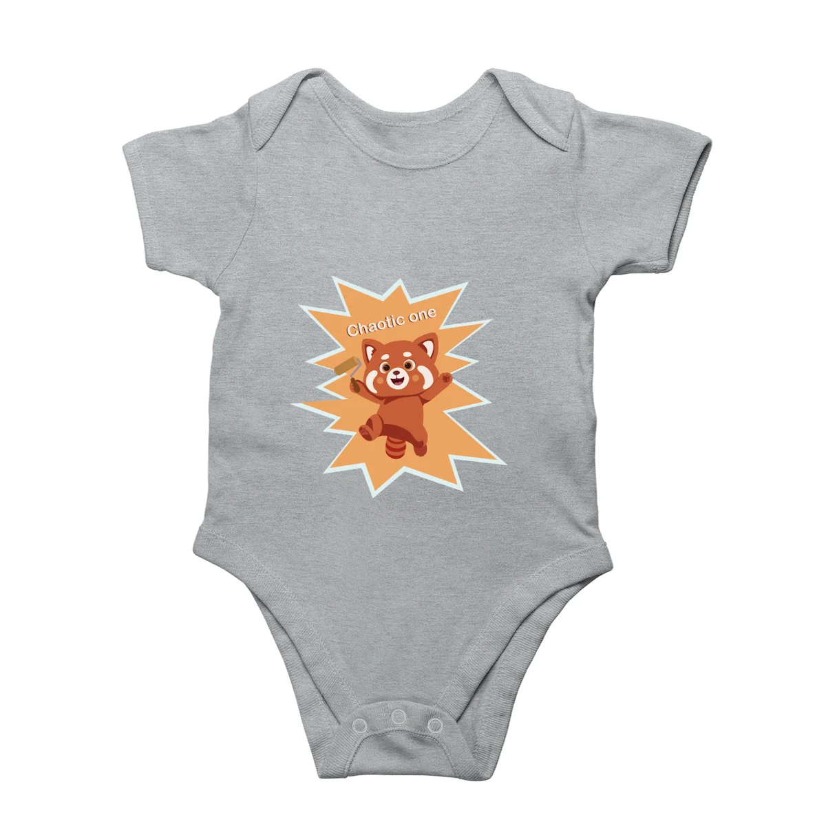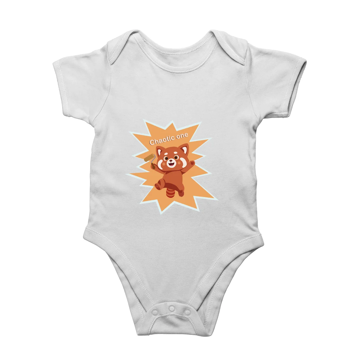 This unisex Chaotic one fox baby romper is designed for both baby boys and girls. The comfortable fit allows free movement, while snap-button closures make diaper changes quick and stress-free for parents.