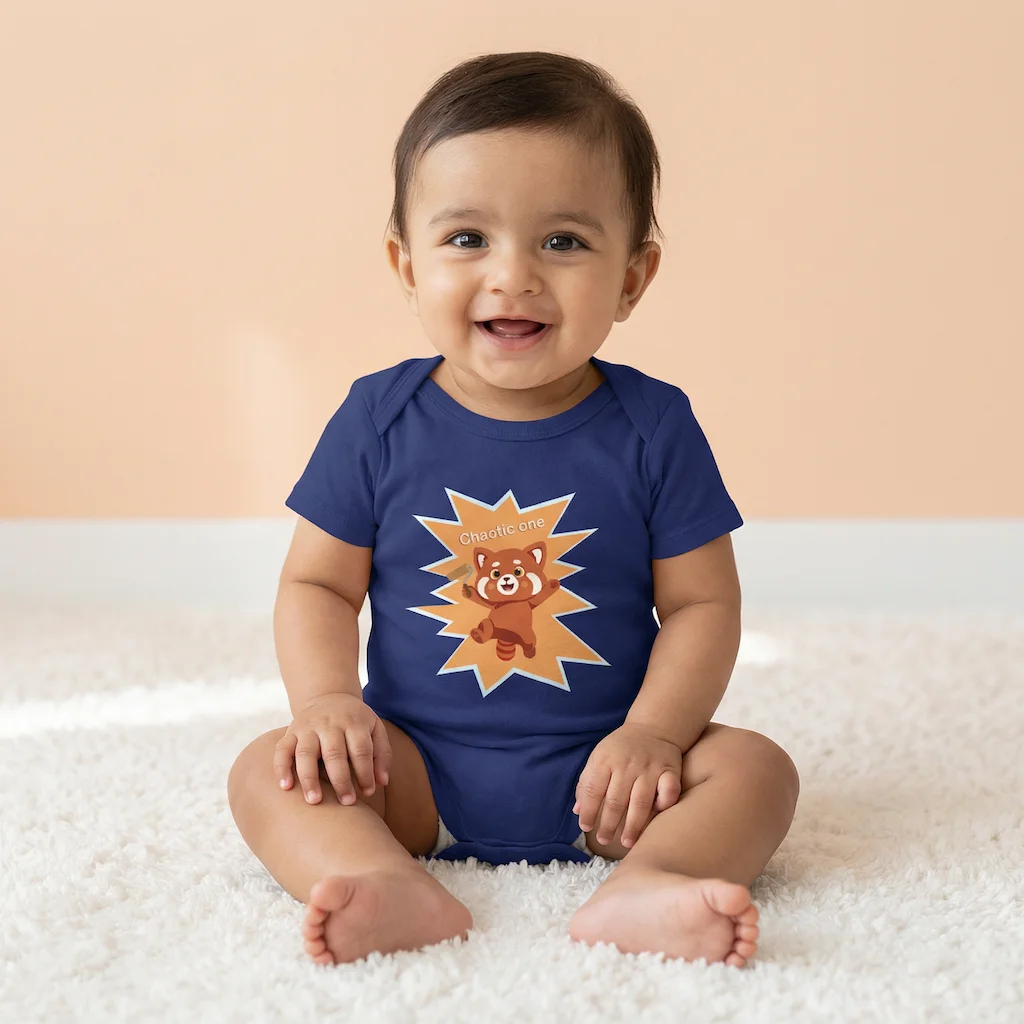 Made from 100% premium cotton, the Chaotic One Fox baby romper is soft, breathable, and gentle on sensitive baby skin. The lightweight fabric ensures all-day comfort, especially suited for Indian weather, whether your little one is playing, crawling, or enjoying nap time.