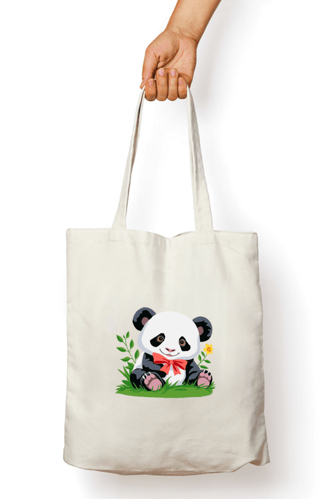 Whether you’re heading to the market, college, or a casual day out, this tote brings smiles everywhere you go. Featuring a lovable panda illustration with a dainty bow, it’s a perfect blend of cute and functional.