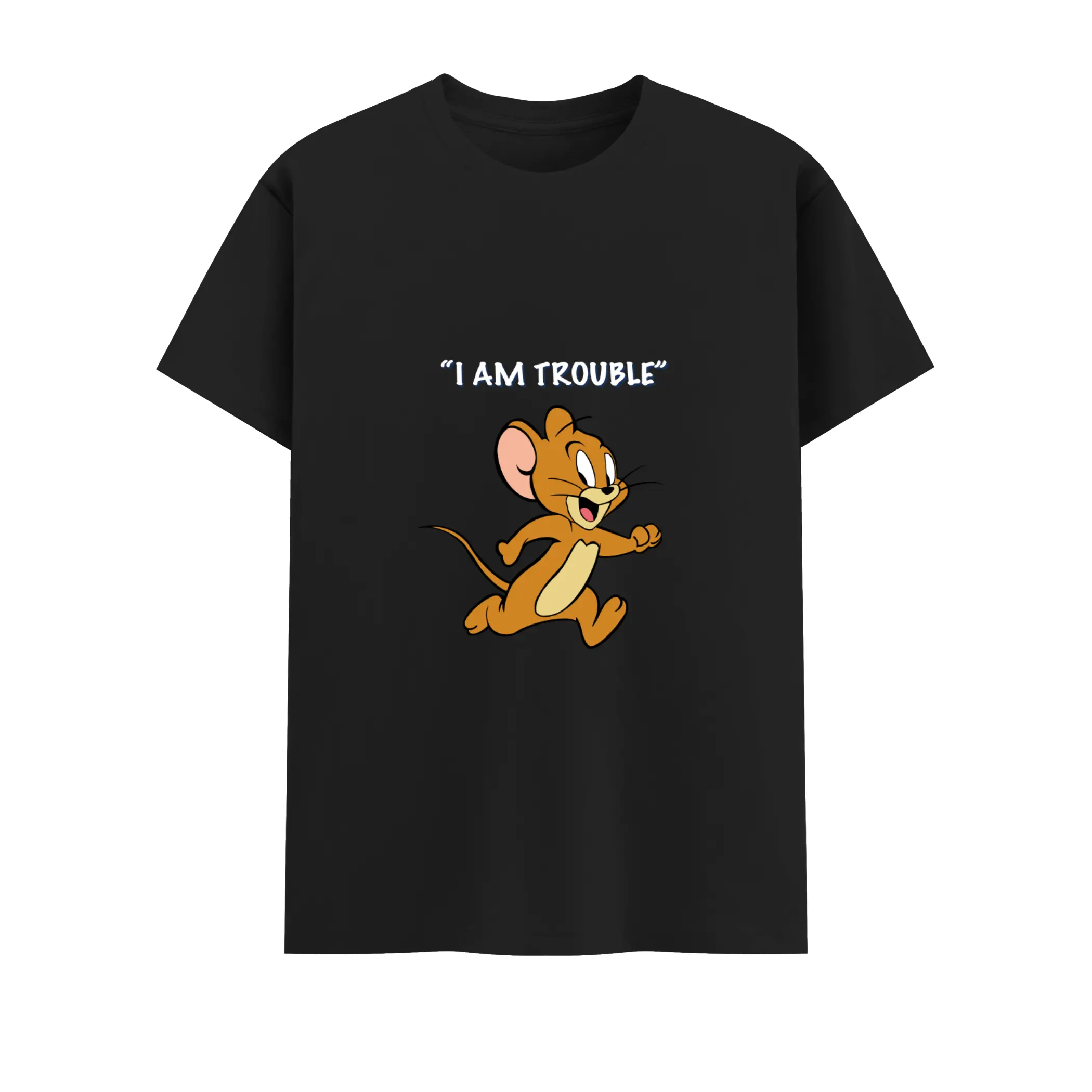 Bold, cheeky, and impossible to ignore. This tee says it loud with “I Am Trouble”, made for the mischievous one in the duo. Whether you’re rocking it solo or giving your other half a hint of who really runs the show, this shirt delivers classic cartoon fun with a playful twist.