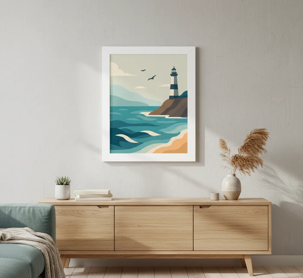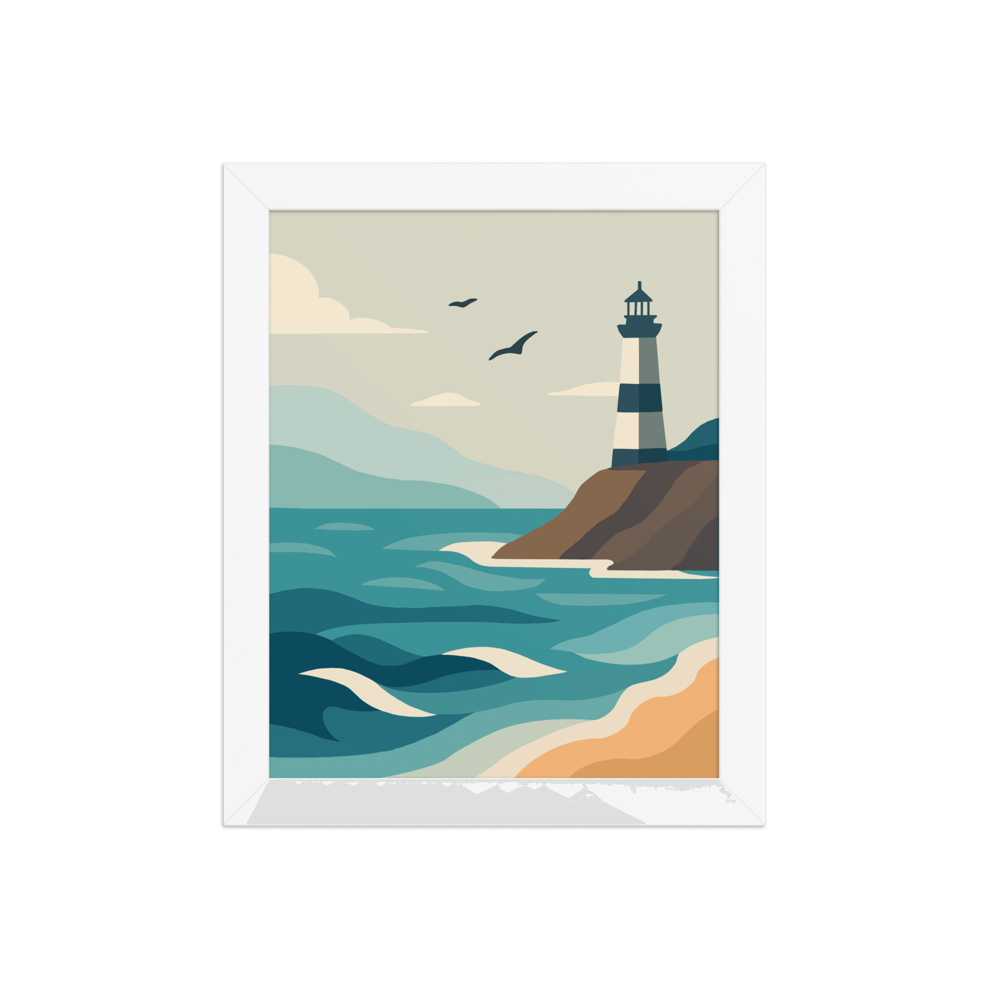Printed on premium-quality paper with vibrant colors and sharp detail, the lighthouse design stands out in any setting. The elegant frame enhances the visual appeal while ensuring long-lasting durability.