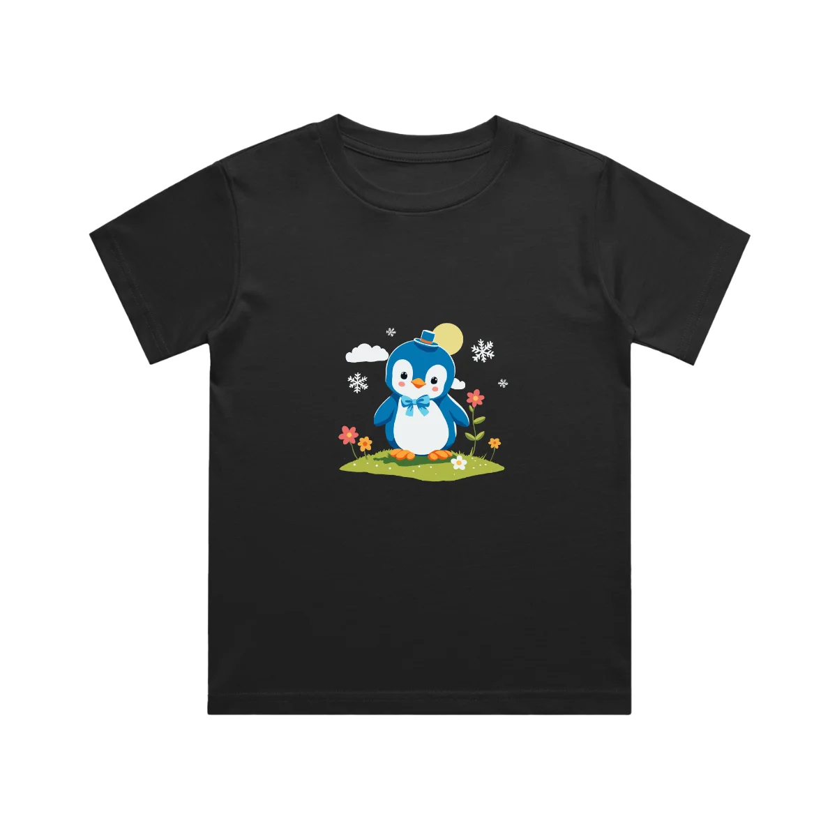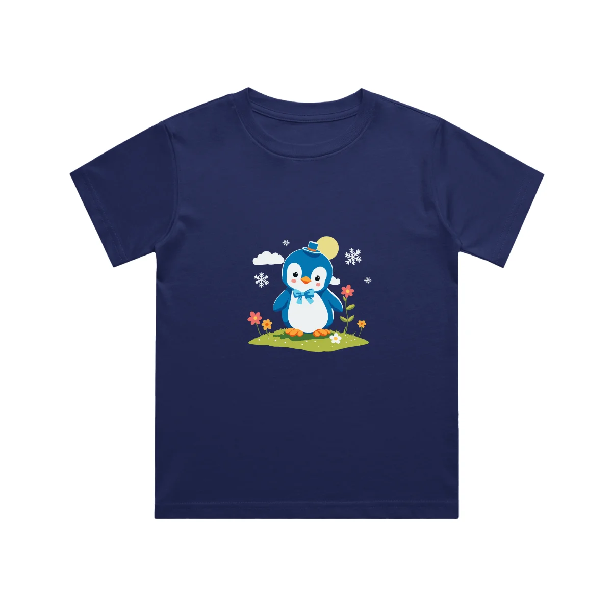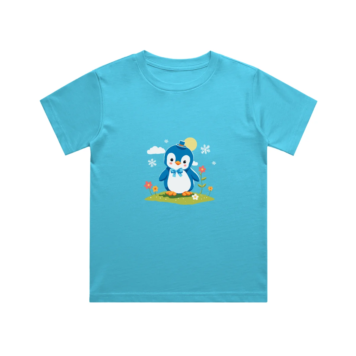 A cute penguin kids t shirt featuring an adorable penguin with a cozy hat and bow. Made from soft cotton, this unisex kids t-shirt is perfect for everyday comfort, playtime, and fun outings.