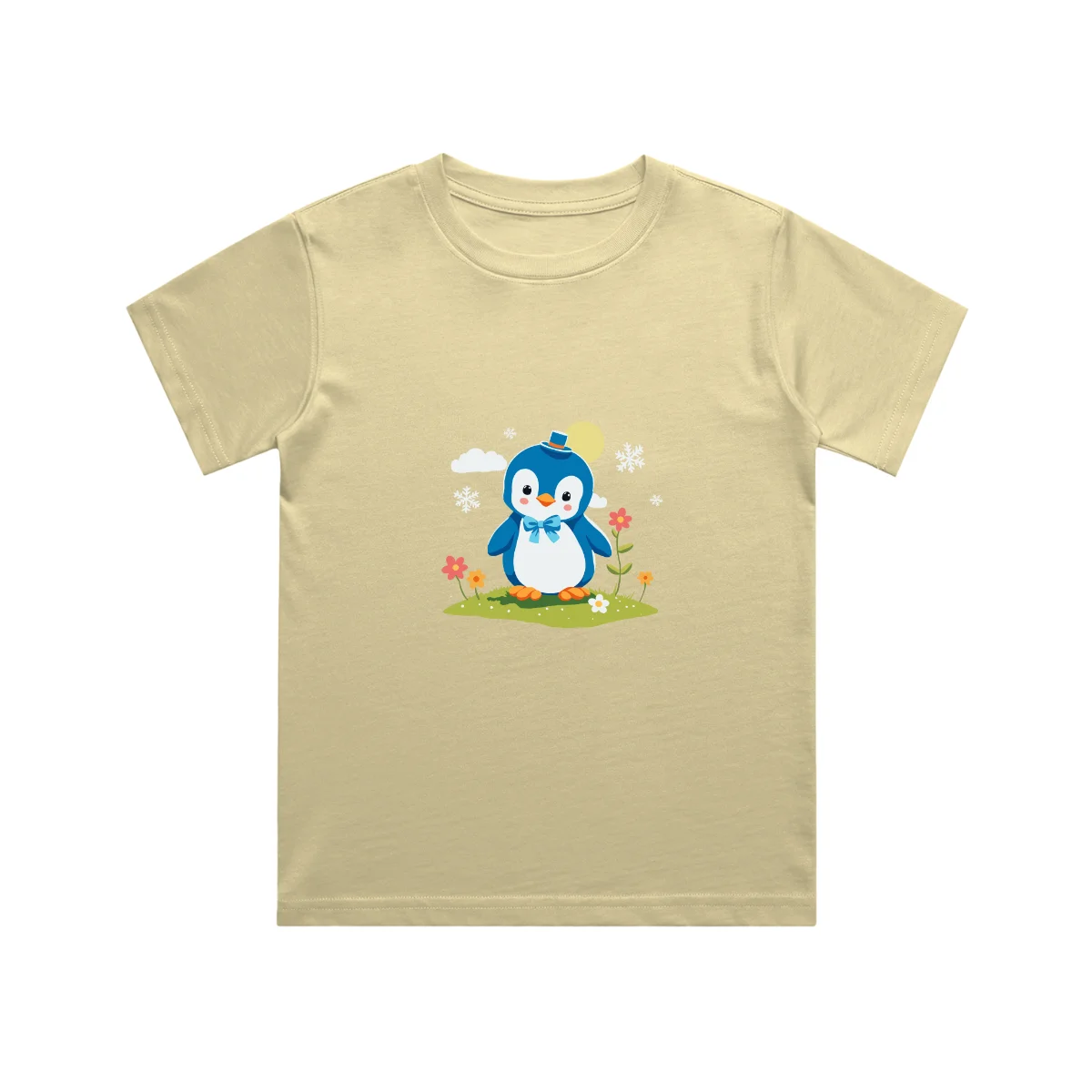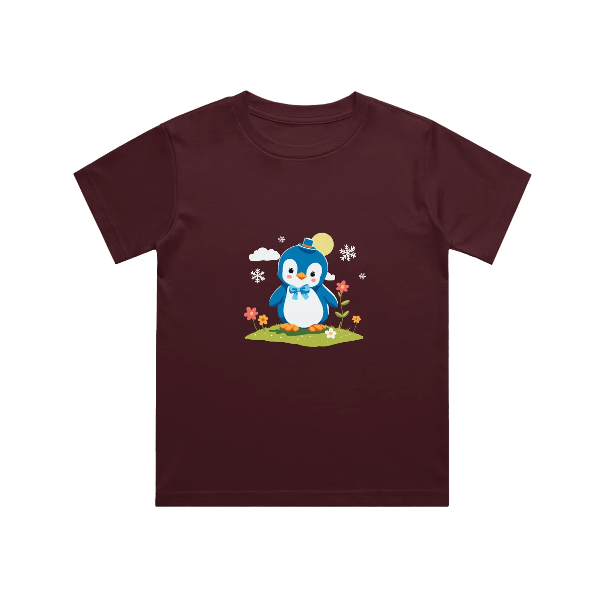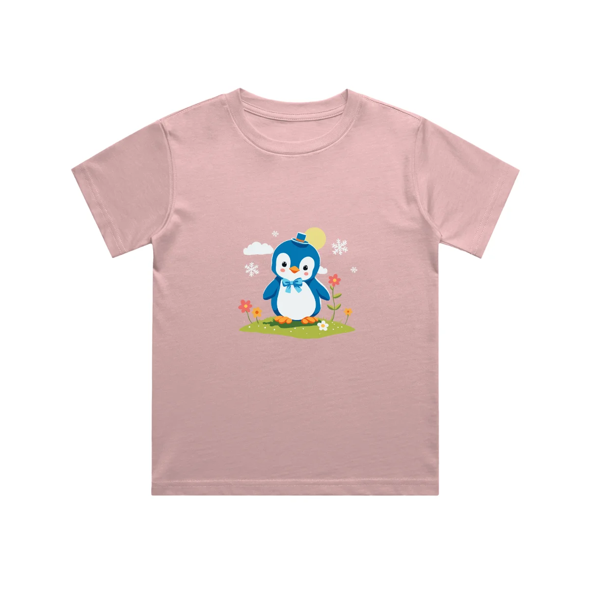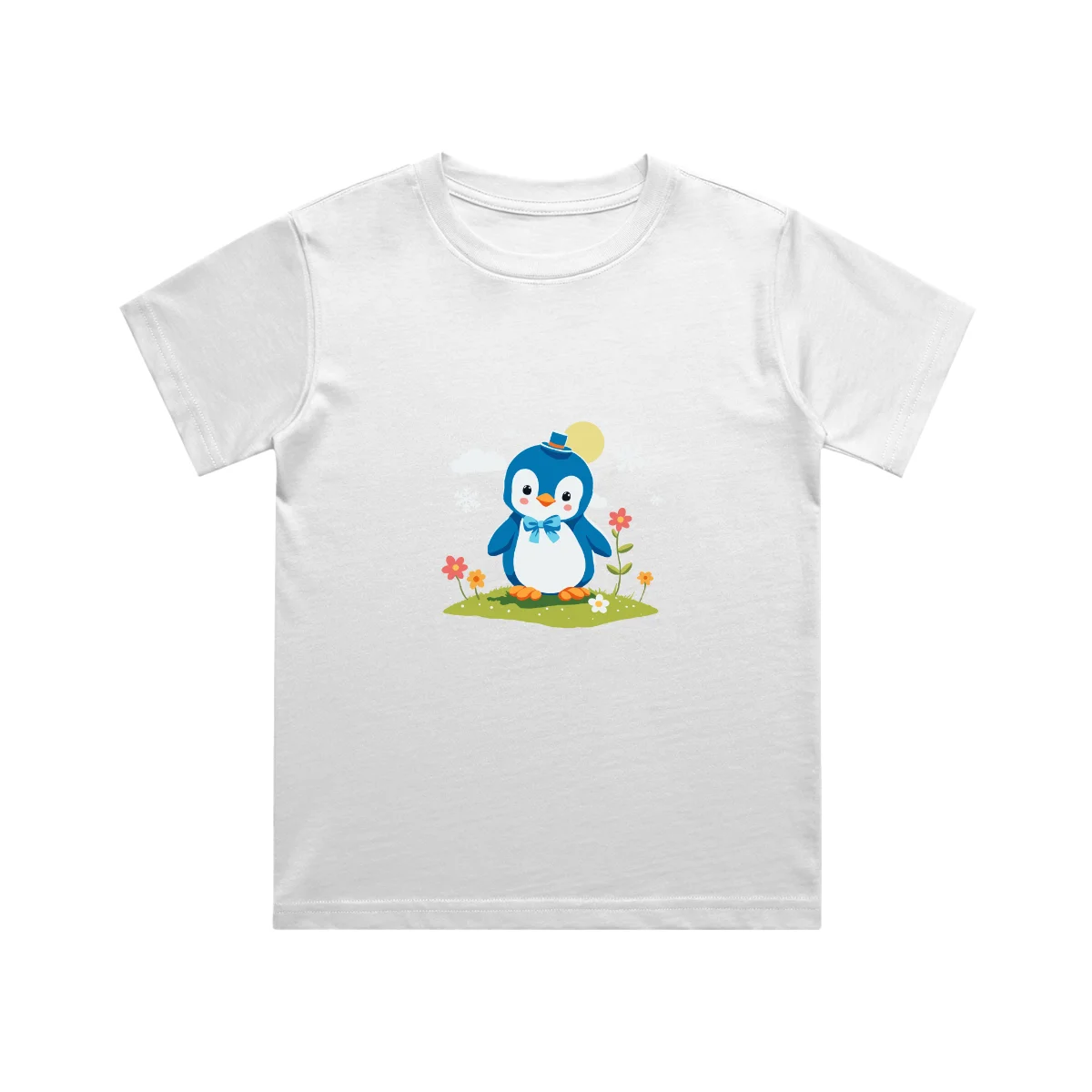 A cute penguin kids t shirt featuring an adorable penguin with a cozy hat and bow. Made from soft cotton, this unisex kids t-shirt is perfect for everyday comfort, playtime, and fun outings.