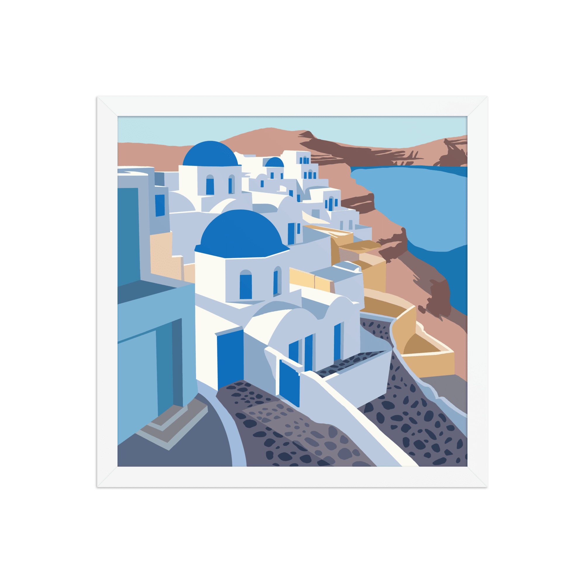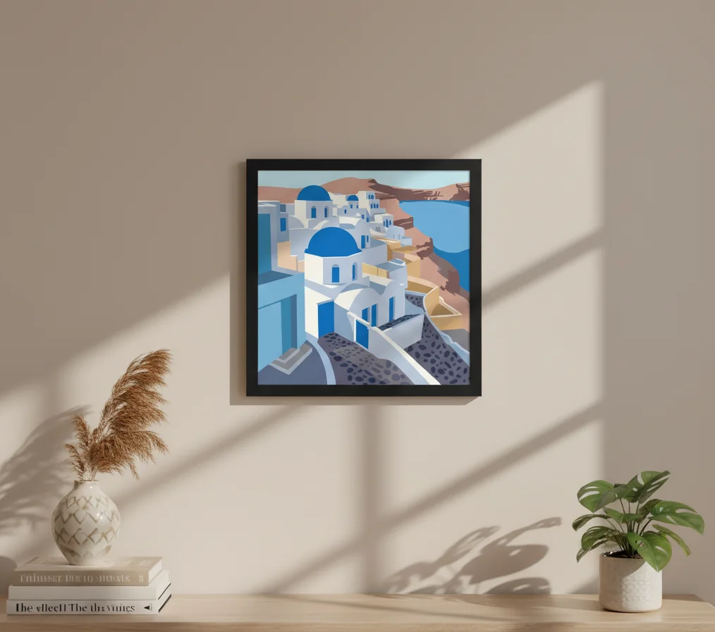 Bring the charm of the Aegean to your home with our Santorini – Framed Poster. Inspired by the iconic blue domes, whitewashed architecture, and the serene coastal vibes of Santorini, this artwork is a perfect blend of elegance and wanderlust.